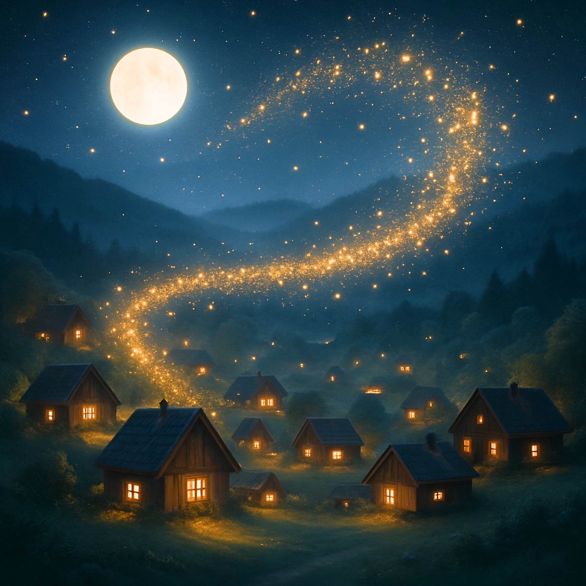 Wróżka Mila jak co wieczór unosi się nad lasem, rozsypując swój złoty, magiczny pyłek. Nagle nad koronami drzew gromadzą się ciemne chmury, zupełnie inne niż zwykle. Gdy mieszkańcy lasu smacznie śpią, a noc cicho otula drzewa… coś się wydarza....W sercu wróżki narasta niepokój...